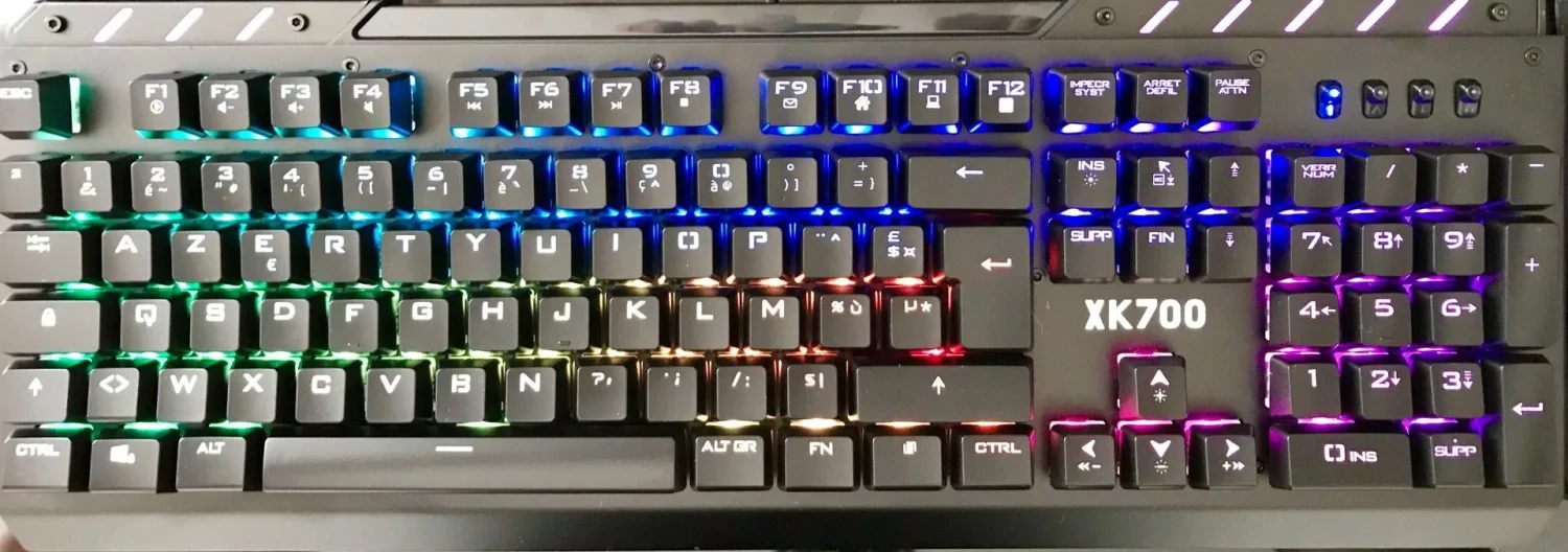 Plongez dans l'univers du gaming avec le clavier mécanique XK700, conçu pour offrir précision, réactivité et style. Doté d’un rétroéclairage RGB multicolore et de switchs mécaniques ultra-réactifs, ce clavier vous garantit une expérience immersive et des performances optimales, que ce soit pour le jeu compétitif ou la saisie intensive.